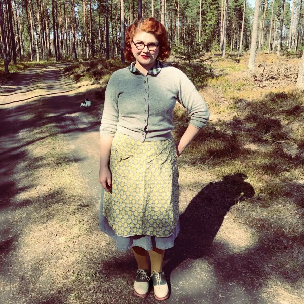 En solig och klar dag med lite höst i luften men ändå såpass varmt att sommaren kändes lite också. Jag har på mig en favoritmodell på kjol i linne som jag sydde i början av sommaren och en favorit vintagekofta i lammull… Bekväma favoriter naturmaterial är det bästa man kan ha på sig i min bok, livet är för kort för annat. ( I bakgrunden står Ruby och glassar i solen)