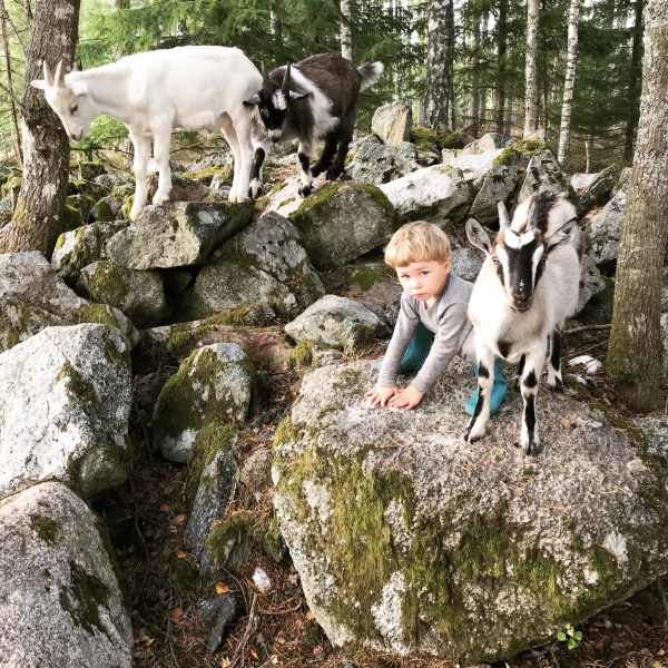 Tittut får han inte nog av.. Glad mest hela tiden är han och speciellt när han kan få peka å klappa på något av djuren. Hönsen och getterna är klara favoriter bland djuren på gården…. Han har favoritkepsen på, ekologisk bomull från Kappahl och så favoriten bland de ärvda koftorna som snart inte passar alls…