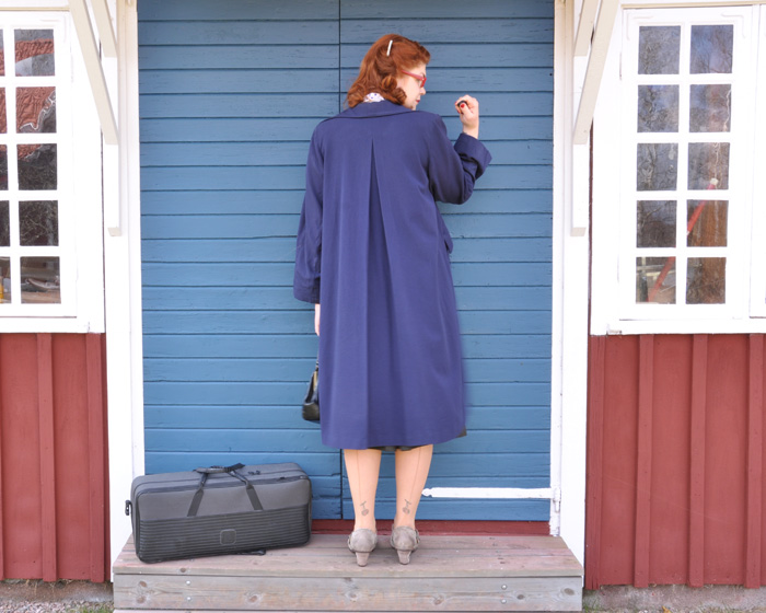 Jag gillar det där vecket i bak på kappan. Det ger en trevlig ledighet samtidigt som linjerna vid axelpartiet blir fina och lagom strama. Någon gång ska jag nog rita av den här kappan för att sy mig en själv, för jag är väldigt förtjust i snittet på den.
