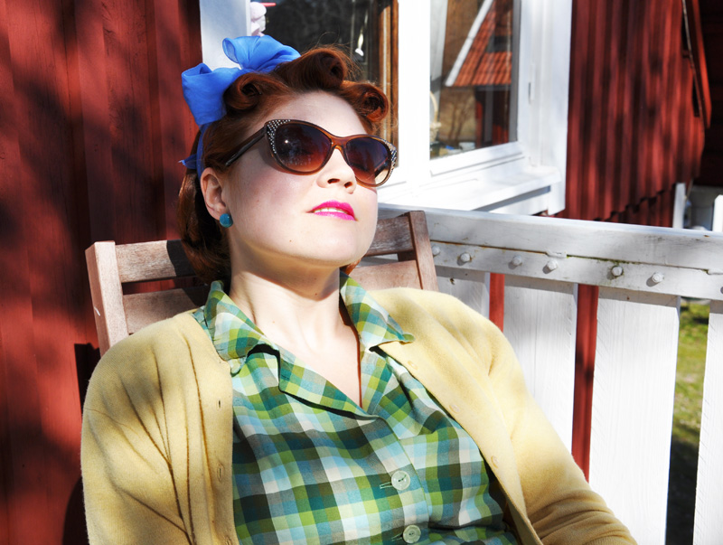 Today I spent a great deal outdoors enjoying the sun and thinking about ”the stockholmers” that apparently have a great deal of snow and chaos today. 300 kilometers can mean a great difference in weather and happy about that am I. I am wearing my favorite flannel shirt that i made about a year ago together with my favorite lambswool cardigan (an Etsy-find). The glasses I got from Lindex a couple of years ago when they had a special 50s-line. After Im done writing this I will spend the rest of the day in my sewingroom. A lovely saturday indeed.