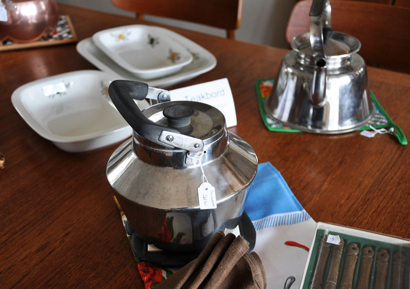 De hade en fin Bernadotte-kanna men det blev ändå att jag köpte den andra och inte för att göra hattar med utan för att koka mitt tevatten i om morgnarna. Till hattändamålet hittade vi en stor kaffekanna i aluminium som kommer bli perfekt.