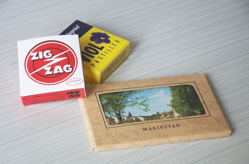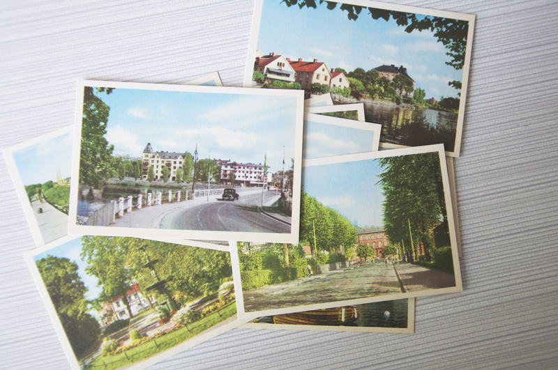 Yesterday my mother and I went to the town Mariestad to drop of some things at the museum. I did some purchases while in town. Somethings I can’t resist are candyboxes with retrodesign and old postcards. The candyboxes looks just like when my mama whas a child, and the violet one was her favorite. The postcards are actually old ones that they found in the basement of the bookstore. It’s a series of pictures of Mariestad in the 50s (made in the 50s to) and I just wish that the town could look like it did then, it must have been a great little town back then.