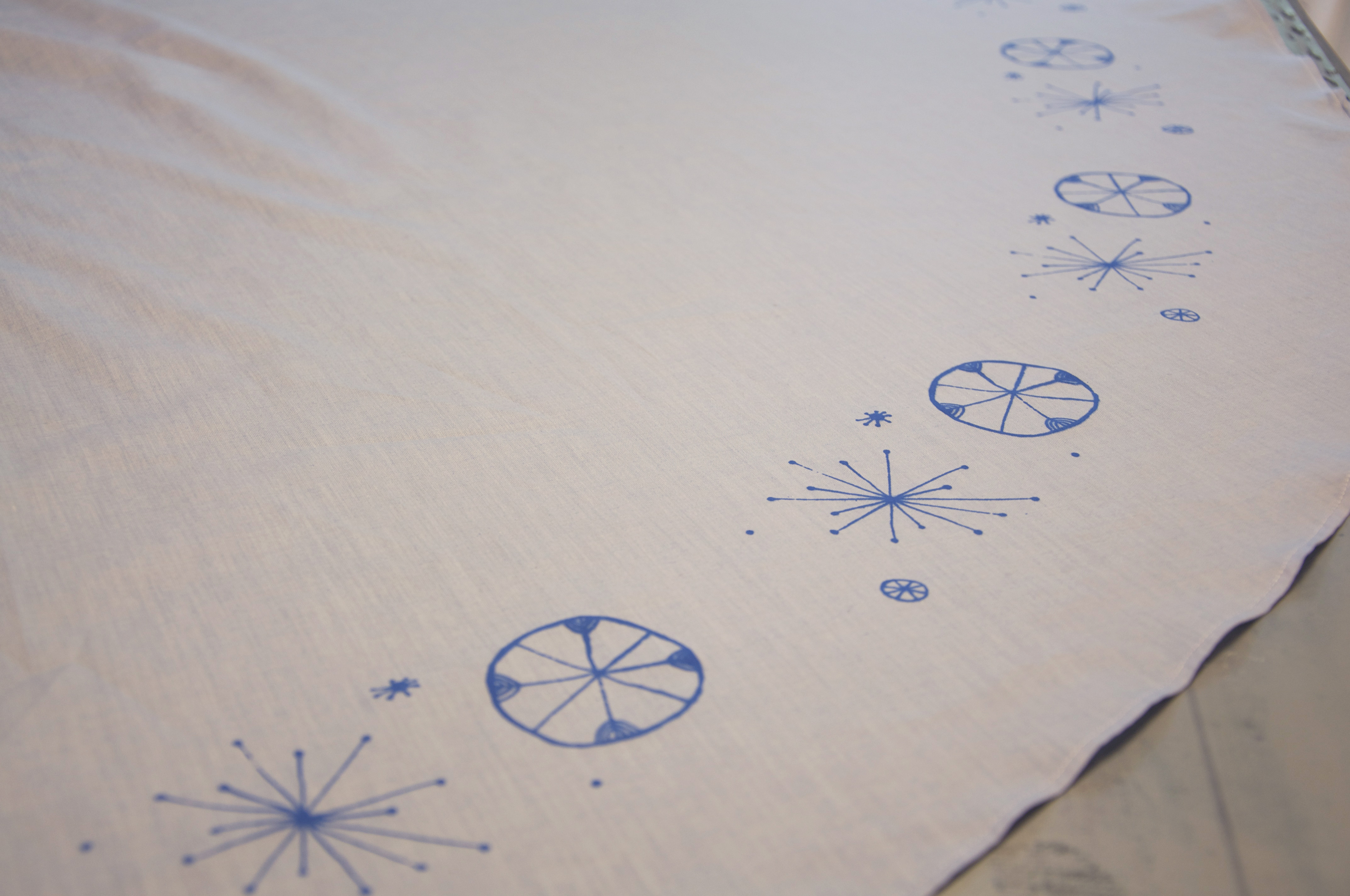 Last few days have been busy as can be. Among other things I’ve been training my printing-skills. With somewhat different results all though most turned out well, this is another circle skirt that I did whith that atomic style plate.
