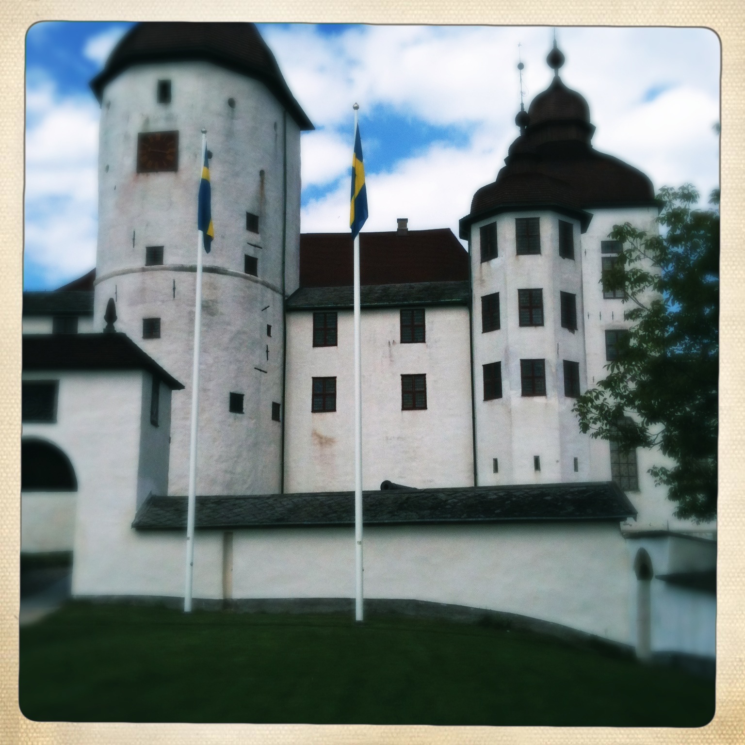 Igår var jag på Läckö-slott för att hänga Färgkrafts årliga utställning i ett av rummen där. Mamma hade packat en picknick-korg med kycklingsallad och innan vi började jobba satte vi oss ned på en bänk framför slottet och åt vår lunch. Det är alltid så underbart att åka till Läckö, det är en sådan fin mijö med det vita slottet alldeles intill Vänern och så förstås har jag ju en extra förkärlek för Läckö eftersom det var där vi gifte för snart sex år sedan.