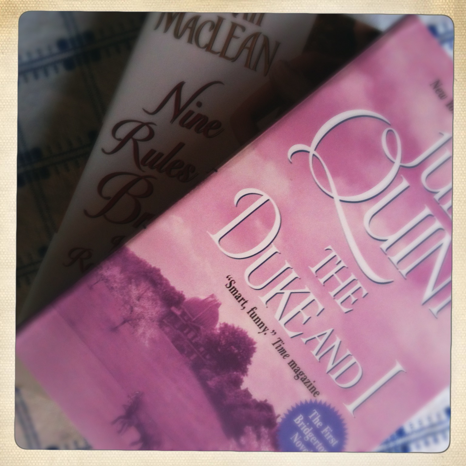 Åh, ser så himla mycket fram emot att få veta vad du tycker om ”The duke and I”, inte den bästa i serien men definitivt bäst att läsa dem i ordning. Jag har förresten också haft superbra helg med indie-allsång på hipp krog och världens roligaste bröllop. Har somnat 4 två nätter i rad, det känns idag kan jag säga.