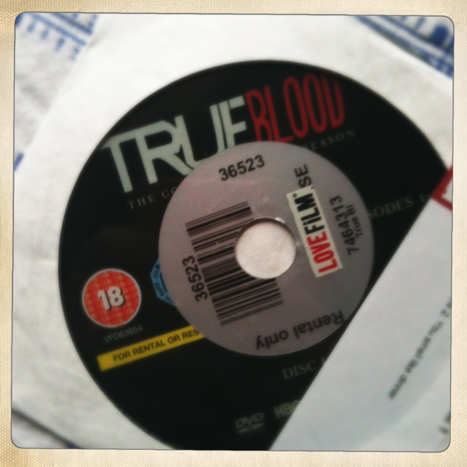 3. När jag tittade i brevlådan var det jackpott så det visslade om det. Efterlängtat bokpaket till mig, tradera-vinst i form av dataspel till maken och det bästa av allt!! Att lovefilm skickade True Blood säsong fyra (whohoo!).