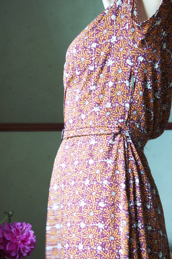 Jag påbörjade den här klänningen för mer än ett år sedan men lade undan arbetet eftersom det inte gick bra, tyget är en sladdrig viskos som jag helt enkelt inte fick grepp om utan blev arg och så tappade jag helt enkelt inte sugen på att sy på den. I sådana lägen är det bäst att ta en paus och det var inte förrän nu som jag kände att det var dags att göra färdigt den. Nu var det helt plötsligt inte alls träligt, istället det tog bara en liten stund vid symaskinen och vips var den färdig. Jag älskar när det blir så och därför har jag aldrig några betänkligheter över att ha många grejer igång samtidigt eller lämna något att ”vila” en längre tid. Fortfarande hade jag dock en känsla av ”vad fasiken ska det här bli för ful-klänning” när jag sydde men så när den var färdig ändrade jag mig helt plötsligt och blev rätt förtjust i den här klassiska vardagsklänningsmodellen. Även om jag nu gått på om hur starka färger är det bästa är det rätt trevligt med lite naturfärger också ibland för ombytes skull och både modellen och tyget är dessutom otroligt skönt att bära. Jag älskar den tunna lite ”crêpade” viskosen och hur sladdrigt och svajsigt det känns mot huden. Synd är bara att jag tappat bort mönstret som jag gjorde, men vill jag ha en liknande modell får jag väl helt enkelt bara göra ett nytt. Dock blir det här ju ännu en påminnelse om att jag måste skärpa mig och inte vara så slarvig med min mönstersamling (som nu börjar bli stor). Hur många påminnelser ska jag behöva egentligen?