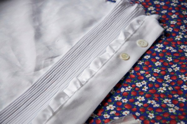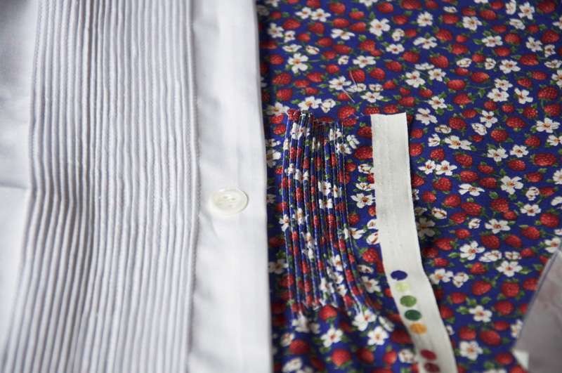 I’m totally lacking the ability to decide myself. At first I followed the original plan, with a dress with pin tucked yoke and peter pan-collar. Then I got the idea to ad a bit of ruffles (although I decided against that in the end). As soon as I was decided about the ruffles I tried my pin tuck-foot with some of the blue dress fabric and realized that it looks pretty good on that to. Maybe I should forget about the white yoke and just make pin tucks along the front instead. Oh, all those decisions! Had I just had the ability to decide I probably would have completed the dress by now, well almost anyway.