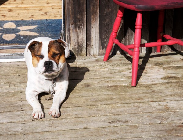 Bobby låg och solade på bästa solplatsen. Han hade också kunnat tänka sig lite äpple men fick inget. (Det går ju inte att dela en liten skrutt på två hästar och en hund) Men han höll till godo med ett tuggben som substitut.
