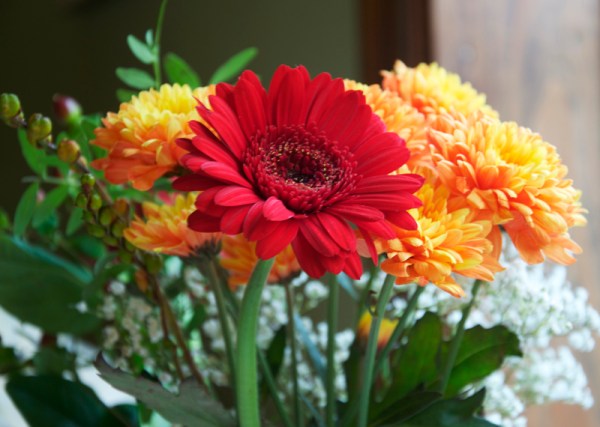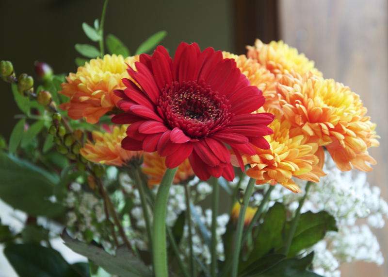 Egentligen var det inte min födelsedag förrän dagen efter middagen med familjen, så jag fick den firad i två dagar istället (optimalt!). När jag kom hem efter några timmars arbete (vi hade öppet hus i ateljén eftersom det var skördefest i byggden) hade maken gjort i ordning middag åt mig och dukat bordet med blommor och presenter.
