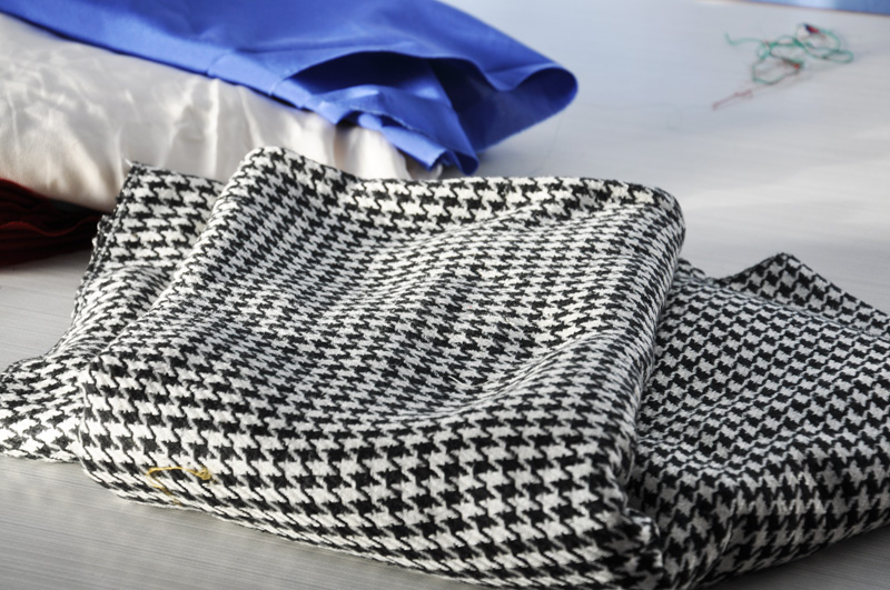 Det här fantastiska hundtands-mönstrade sidenet i en lite kraftigare kvalité köpte faktiskt mamma och jag tillsammans. Det ska bli en varsin pennkjol, tanken är att vi på nästa mässa ska matcha varandra ännu mer än vad vi redan gör (är ju ganska lika, och nu när jag övertygat mamma om att också ha pin-curls är det än mer synligt). Vi kommer bli snygga som skam, dessutom är ett par av vårens kommande skor från Dkode en vit högklackad sko med T-slejf och svarta lackdetaljer (tänk kvinnliga maffioso-pjuck) och de kommer verkligen komma till sin rätt till en svartvit siden-pennkjol. Det är jag alldeles övertygad om.