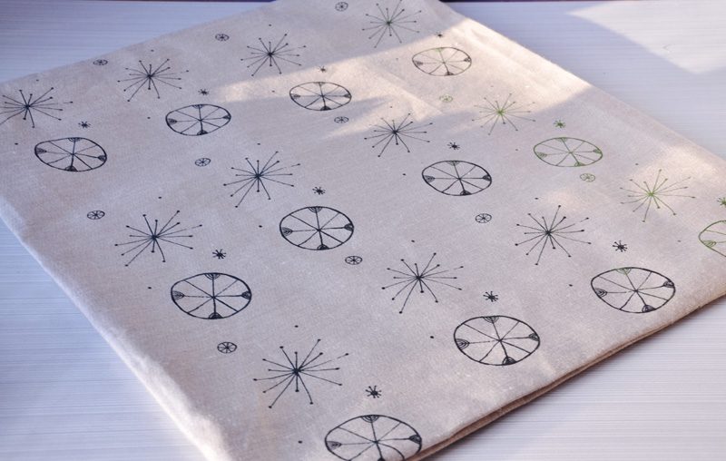 Just nu har jag lite tryckta saker med på en julutställning på Slöjdens hus i Skövde. Tiden att hinna med var lite kort så det blev ”bara” en kudde (utan innerkudde på bilden) och två set med linneduk och servetter. Jag har inte hunnit göra några nya mönster så jag körde på en schablon jag gjorde tidigare i år. Så fort det lugnat sig lite ska jag sätta igång och göra lite fler mönster, jag längtar så det kliar i fingrarna. Dessutom har jag ju ett helt hus att göra gardiner, dukar och kuddar till.. Föresten så tittar jag just nu på tapeter till vardagsrummet och försöker välja i snårskogen. Boråstapeter har bland annat en kollektion med tapeter framtagna i samarbete med Ljungbergs textil bestående mönster av 50-talets största formgivare, otroligt snyggt även om jag inte är helt säker på att de passar in i vårt hus som drar lite mer åt det stug-mysiga hållet snarare än stilren funkis. Vi får se vad det blir helt enkelt, det där kan man ju som sagt nöta och blöta ganska länge innan det självklara valet uppenbarar sig….