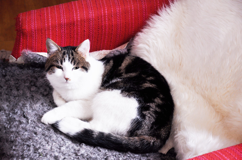 Katten låg som bäst och sov i fåtöljen när jag kom ned i vardagsrummet och störde honom genom att dra fram fotostativet. Jag har ännu inte hittat de bästa ställena att fota på i huset utan får testa mig fram vart ljuset är bäst allteftersom. Vardagsrummet fick det bli idag efter att ha svurit en stund över vad mörkt det var i syrummet på övervåningen där jag först hade tänkt fota.