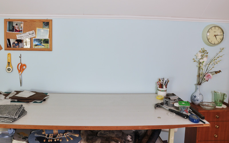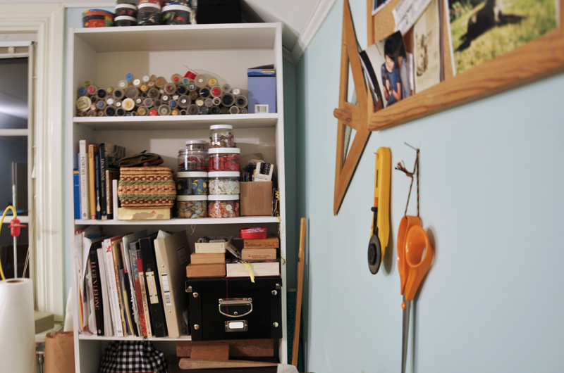 Finally a sewing oriented post here on the blog. How I have missed it but the last few months with moving and renovation just had no room for it. But now I’m getting my sewingspace together and soon I’ll be back on track with several projects to sink my teeth in. Lovely! This is how it looks so far.. The bookcases where in the house when we bought it, I kept them after we redid the walls and painted the ceiling. I might dream about nice old bookcases in teak but there simply isn’t enough walls for that kind of furniture. The wall above the cutting-table is to bare and I been thinking about finally putting all those postcards I’ve been collecting over the years to use to make sort of an inspiration-wall. I just have to figure out how to put them up there. Shall I use lines and those mini-clothes pins? Or maybe just put them in frames and put up on the wall? I’ll have to think about that some more I think…..