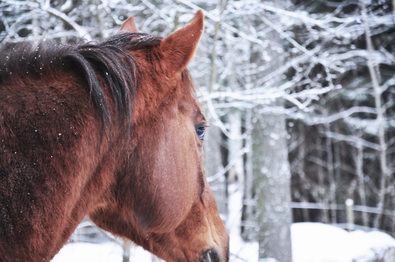 Djur, det finns inget bättre och just hästar är det något speciellt med. De luktar så gott, man vill bara borra in näsan i pälsen på halsen och stå och snusa. Klappa dem på mulen som är så mjuk och lyssna på det avslappnande ljudet när de äter sitt hö. Man borde spela in det ljudet och ha på skiva att lyssna på när det är dags att sova….. Just nu saknar jag ridningen något otroligt, för det har blivit lite för lite med den varan på sista tiden. Jag skyller på renoverings-hösten och vintervädret som avskräckt. Men nu ska det bli ändring. I julklapp av syster fick jag ett par fina ridtermobyxor som ju måste användas innan våren börjar komma och även om det kan tyckas lite jobbigt först när det är kallt och ruggigt så finns det få saker som är så uppfriskande som att galoppera fram i pudersnö som yr runt benen på hästen. Härligt så det heter duga faktiskt!
