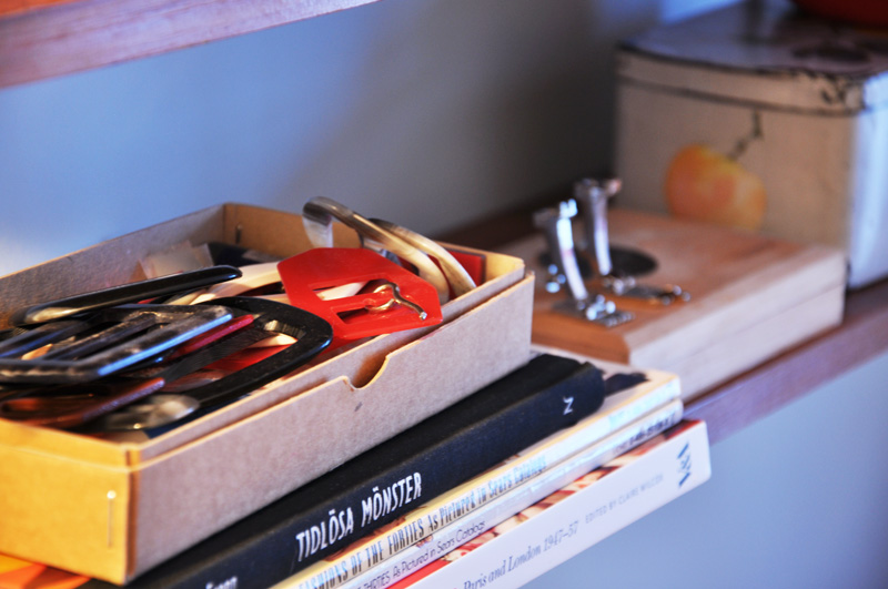 Today I spent time in my sewing room putting things together. I finally mounted the shelfs on the wall above the sewing machine and filled it with useful stuff and favorites that I like to have close by. It has very quickly become my favorite room in the house and the place for may fun things to make in the future I’m sure.