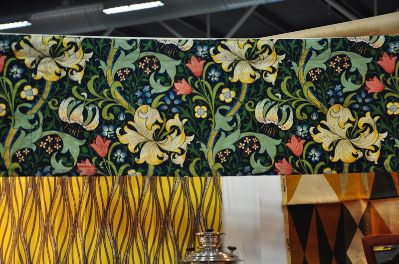 Upptäckte massa fint på Antikmässan i angränsande mässhall. Mycket att titta på och gissa om jag fick nostalgikänslor när jag upptäckte det här tyget hängandes i en monter. En fåtölj från mormor är nämligen klädd i exakt samma tyg, fast det är förstås ruskigt mycket mer slitet. Fint är det i alla fall, jag älskar blommigt och mustiga färger.