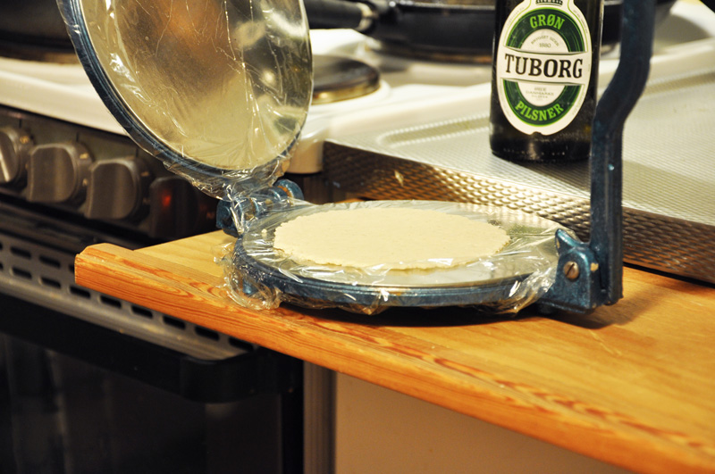 Andreas hade nyligen investerat i en tortillapress. I vilken han pressade hemgjorda majstortillas så det stod härliga till.