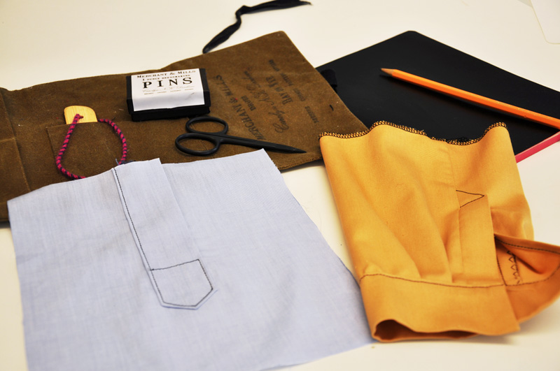 Vi sydde detaljer såsom olika sprund, stolpfickor, och kragar.
