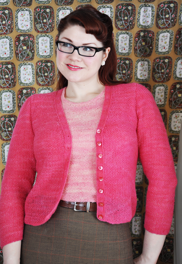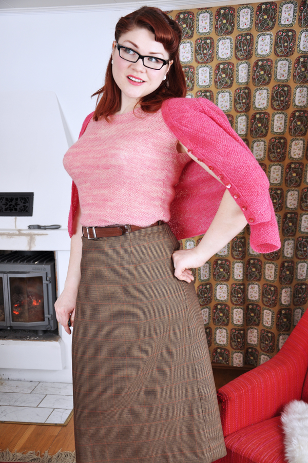 /I love this pink color and sometimes it’s the pastels that rock an outfit. This is one of our models that I almost forgot about, easy and simple but still quite dashing. Made in a color called ”Pink candy”. I chose to wear it with this pale pink jumper and made it into a jumperset. The pencilskirt is newly made, I started it before we moved but didn’t have the time to finish it then. Now I did however and it went really fast because of it’s halfmade status. Love that, so now I have another brown wool pencil skirt to ad to my collection, but one can’t have to many of those. One really can’t…/