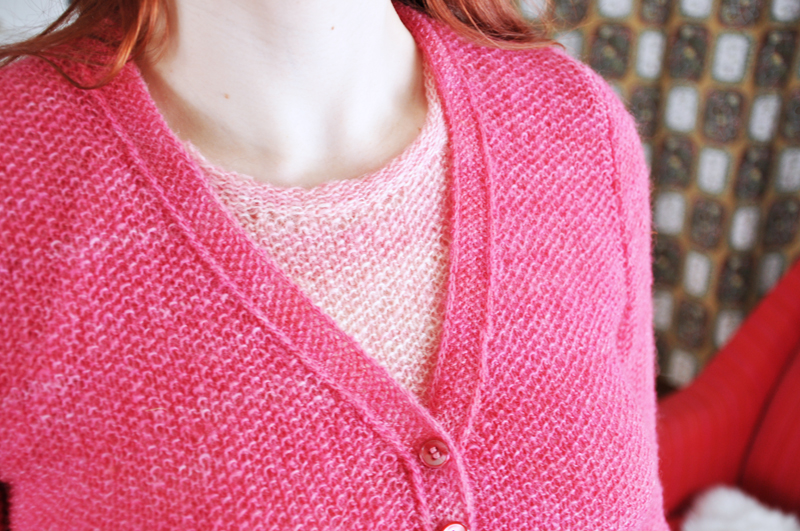 Under den har jag en annan finfin jumper med holkärm. Väldigt skönt med många lager ull när det är så här kyligt och de rosa tonerna tyckte jag gick rackarns fint ihop. Dessutom jag gillar ju att vara en ”jumpergirl”.