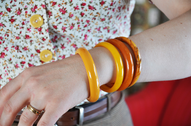 easter4/The blouse I made got to be the Easter-blouse. Quite fitting with the yellow buttons. To be even more matching I wore my yellow bakelite jewelry. Happy easter!/