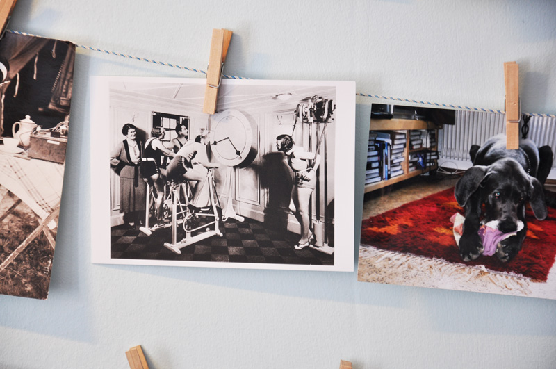 Jag hade satt upp några nya vykort på inspirationsväggen ovanför tillklippingsbordet. Jag hade köpt dem i bokaffären i Haga när jag var i Göteborg förrförra helgen. Fotot bredvid 20-tals damerna som tränar är på min förra Grand Danois, Beppe. Han var en fin hund som jag fortfarande saknar i hjärtat trots att det är många år sedan han gick bort. Med sina helikopteröron och sin snuttefilt som han älskade att snutta på var han en riktig söting och min bästa vän i många år.