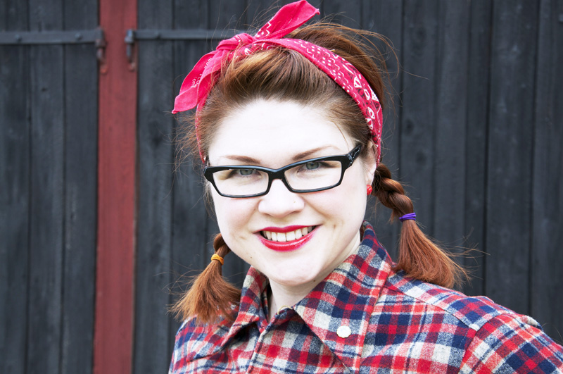 Här är jag, peppad och arbets-chic med bandana om håret.