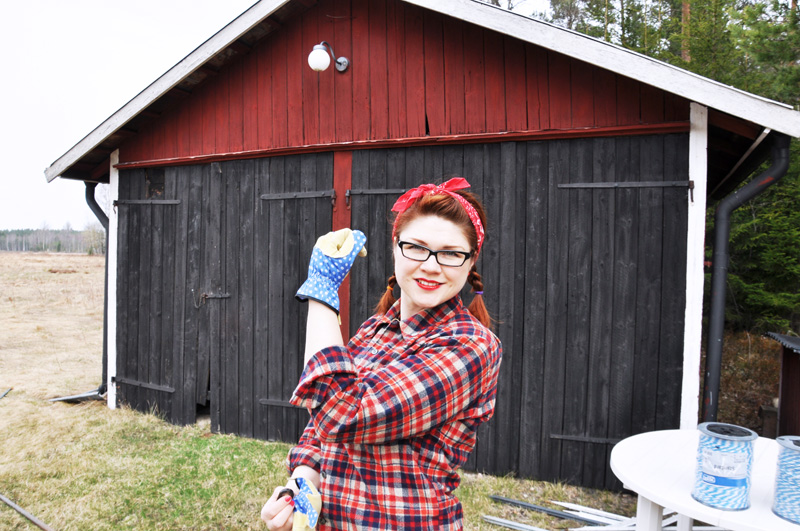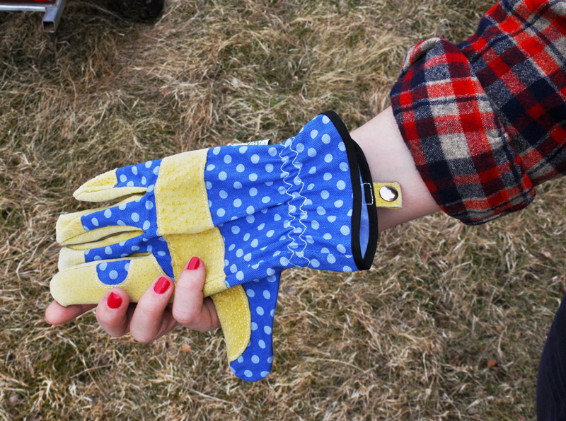 Jag hade även mina nya arbetshandskar som jag hittade på Plantagen före helgen. Blåa och fina med prickar skyddade de både händer och manikyr.