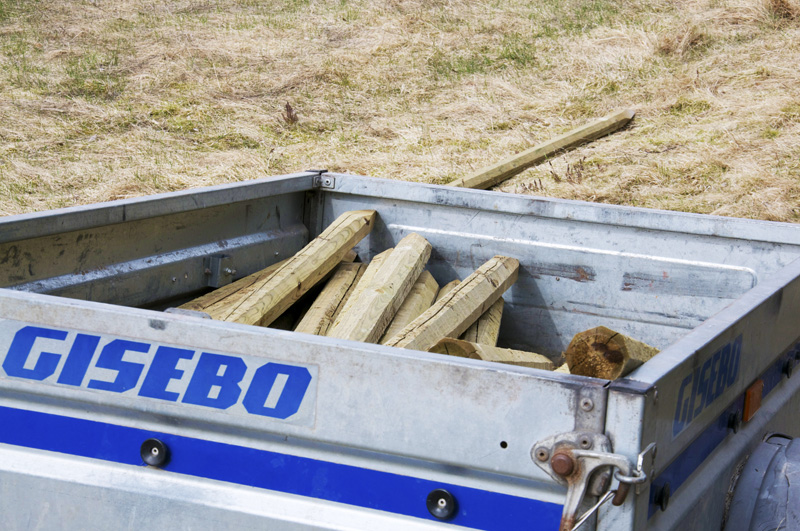 Hela kärran var fylld av stolp när vi började och vi får nog åka tillbaka och hämta fler innan vi är färdiga. Det går åt mer än vad man skulle kunna tro.