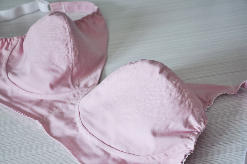 Jag insåg helt plötsligt att min underklädeslåda var i fattigt skick, då i synnerhet på grund av det skrala antalet bh-ar som fanns i den. Så jag tog fram mina roliga lådor med band och allehanda saker som behövs när man syr underkläder och sydde en ny bh. Den här gången ville jag jag en bullet-bra istället för de ”vanliga” jag brukar sy, jag prövade dessutom ett nytt mönster som jag fick från Lisa när jag köpte resårspets av henne på förrförra syfestivalen. Det var ”Kwik Sew 3594 ”som jag använde och lätt gick att göra om till en bh med lite mer vintage-känsla. Till nästa bh kommer jag göra ytterligare lite förändringar sen har jag ett riktigt bra bullet-bra mönster som för övrigt fungerar ypperligt att göra utan stickningarna för en lite mer diskret strut-form på bysten. Eftersom det var ett prov sydde jag i ett enkelt rosa bomullstyg, nästa gång ska jag nog ta fram de lite finare underklädes-tygerna jag har i mina gömmor. För det är ju lika bra att jag syr ett helt gäng nya bh-ar på en gång så underklädeslådan blir ordentligt välfylld och det slipper bli så där skralt igen. Sen är det ju otroligt roligt att sy underkläder också.