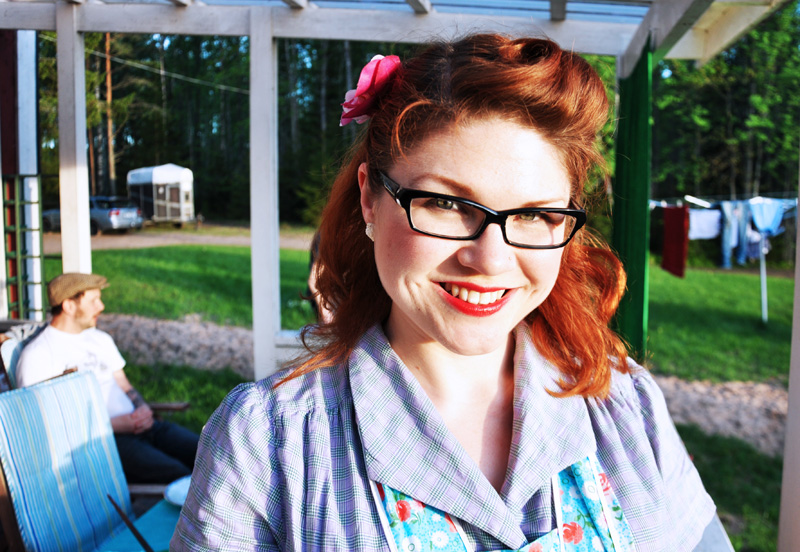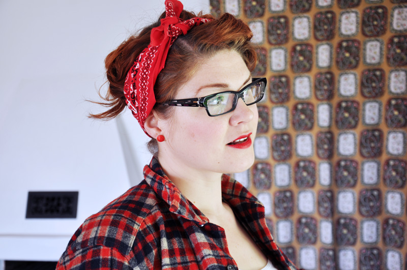 Bandana om håret och läppstiftet på. Man kan ju vara chic även när man jobbar ute på fältet.