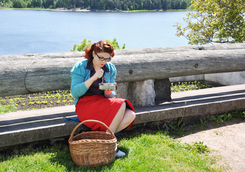 /We went to put up our exhibition-room at Läckö Castle last friday. Beautiful as ever and of course I have a soft spot for Läckö since it was there my husband and I got married seven years ago. We always have a room at Läckö where we show some of our knitted models and share information about wool and it’s use. We started working and then took a break for lunch, very nice environment for a quick picnic I must say. The wind was rather chilly so I was glad to have my favorite sweater with me, and of course comfortable shoes…./