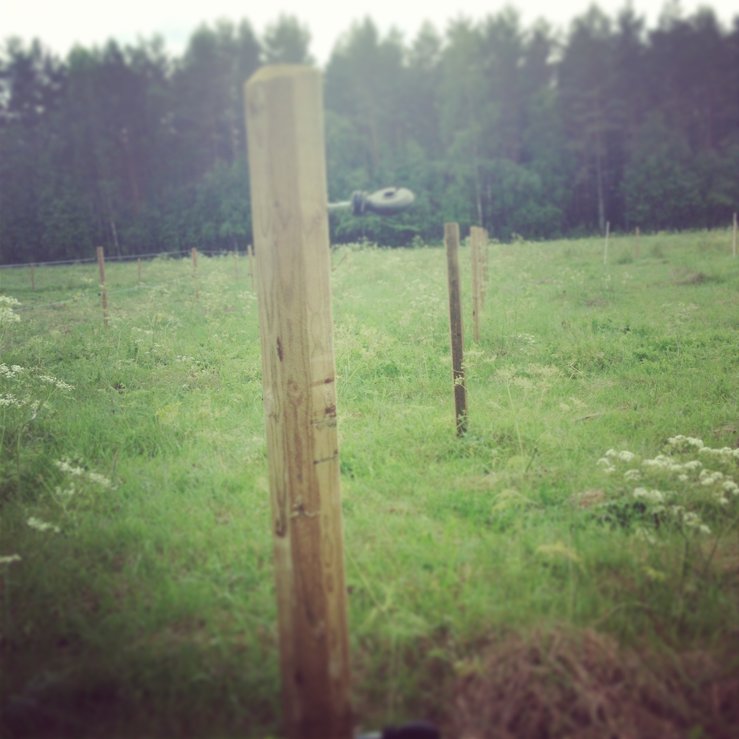 Vi var i Varberg en sväng runt midsommar och hade räkfrossa hos vännerna där. Mycket trevligt. Sedan var det bara att bege sig hemåt och bygga hage. Som vi slet och tidspress var det också. Eftersom jag några dagar senare skulle få hämta hem finaste Kansas och en hingst måste ju ha en egen hage att gå i.
