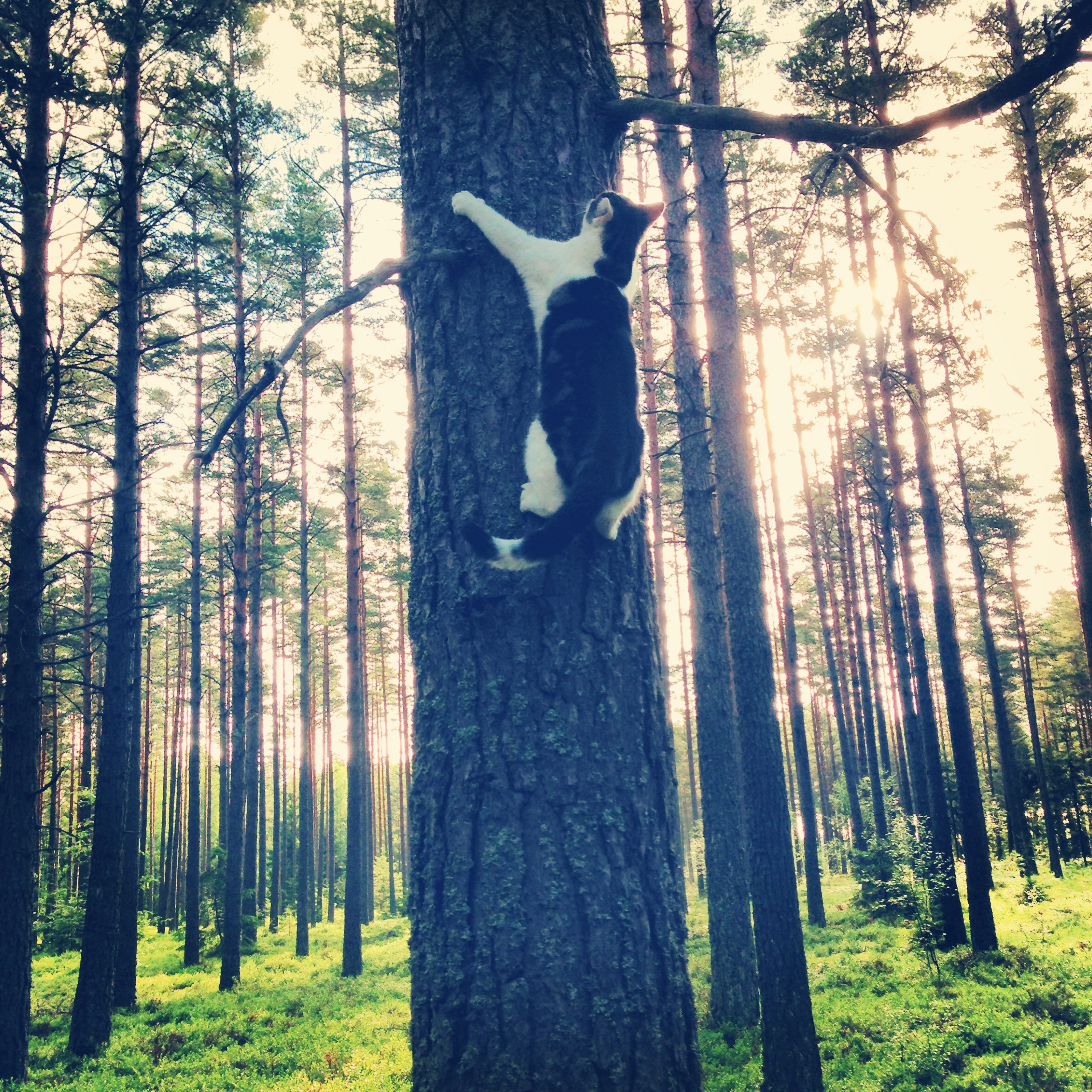 Trisse visade upp sina färdigheter i trädklättring en morgon då jag promenerade hunden och så kom de första kantarellerna i kanten längs vår grusväg. Årets första är alltid de godaste.