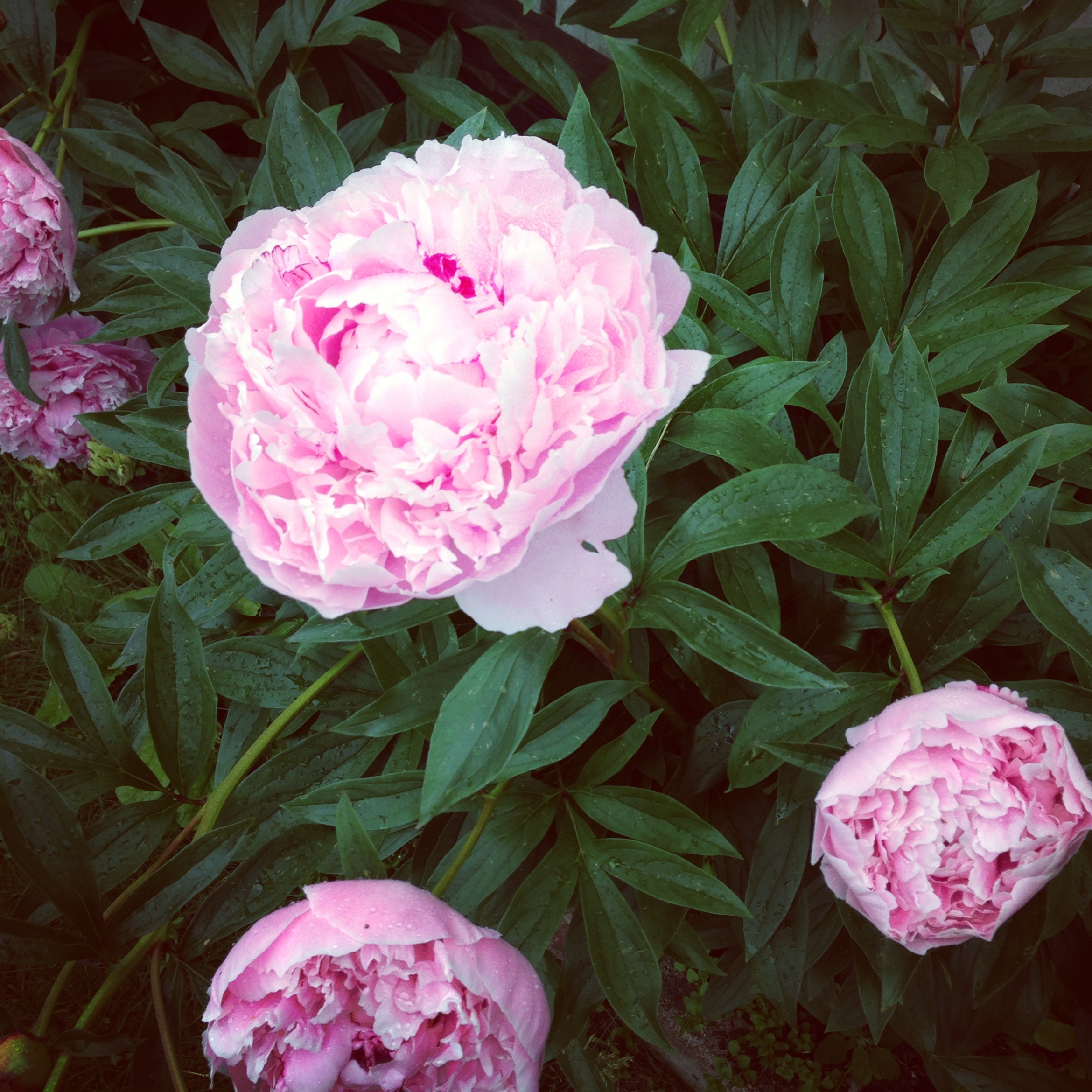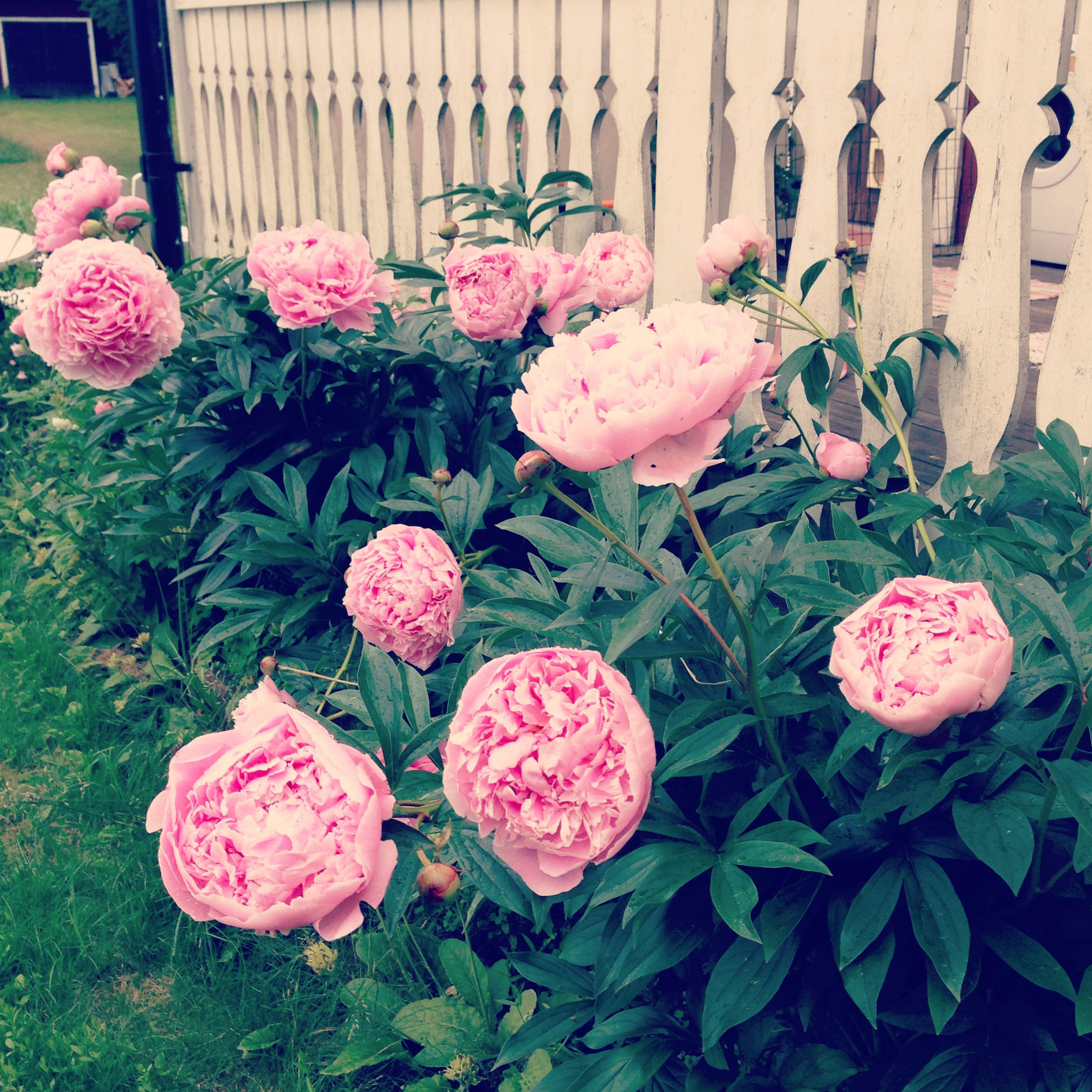 Pionrabatten slog ut i full blom och jag var mäkta glad över att pionerna visade sig vara rosa. Ståtligt och tjusigt så det förslår!