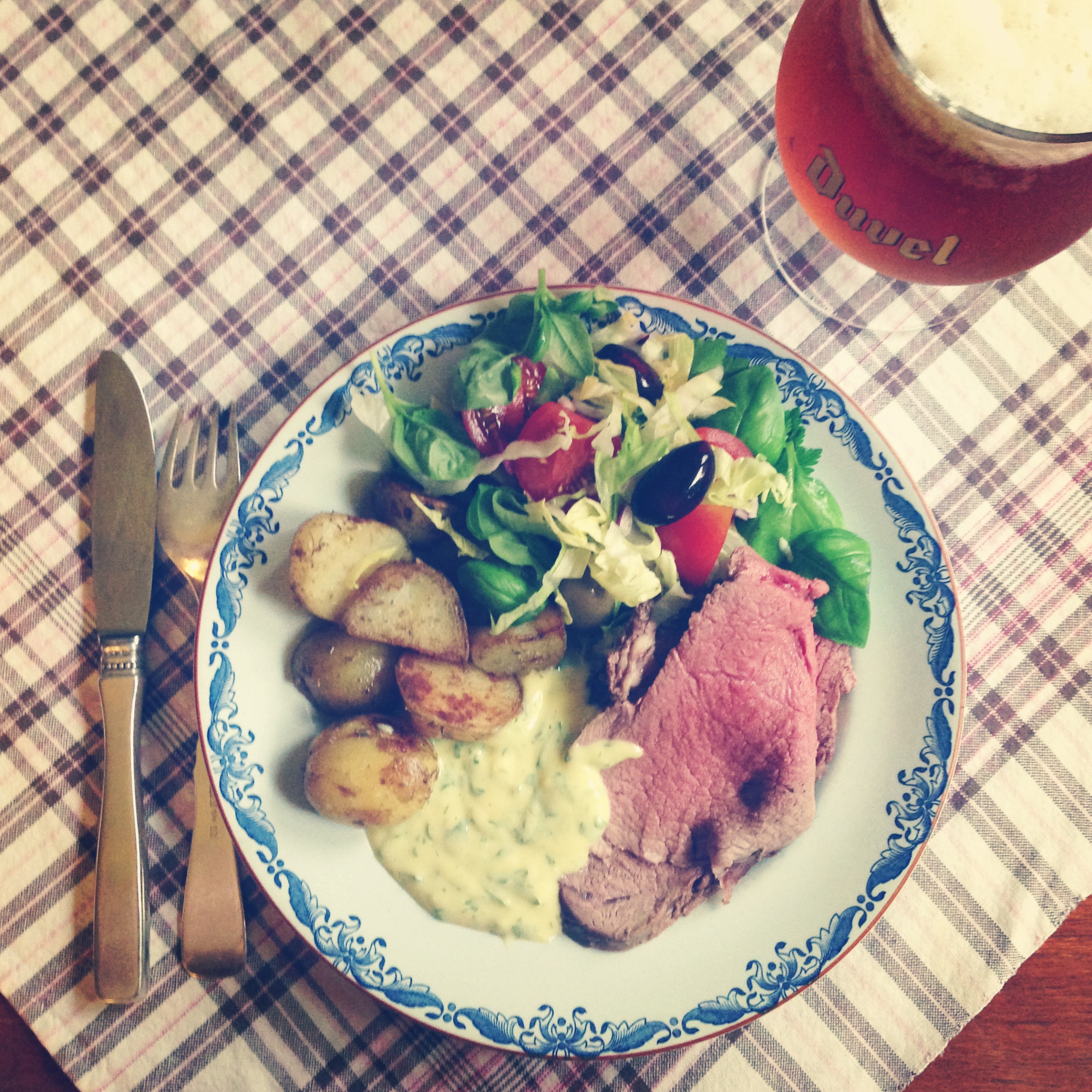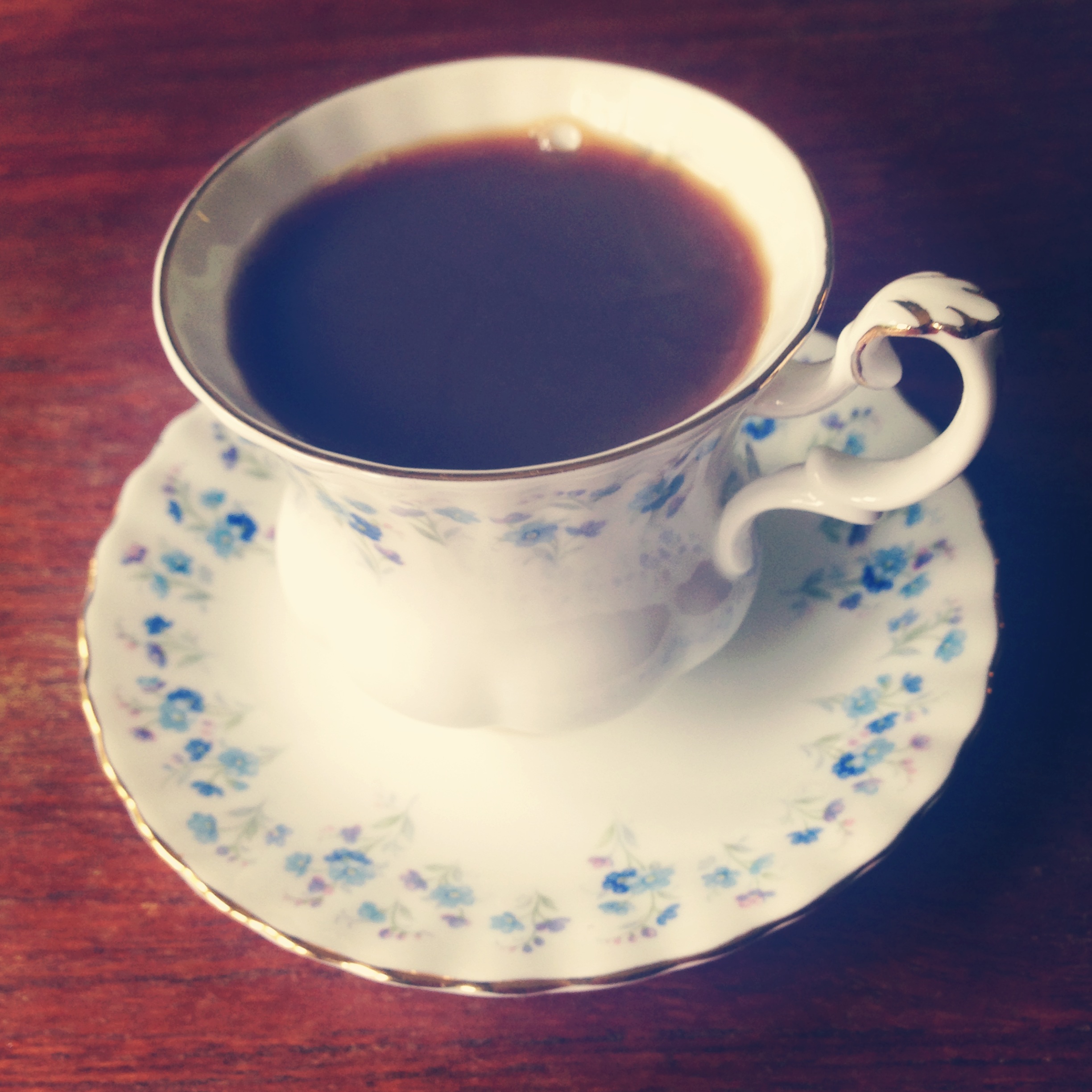 Jag fick några fina kaffekoppar av en av mammas grannar som rensade ut i ett förråd. Mäkta fina tyckte jag och de passade bra med små koppar eftersom jag försöker skära ned på kaffe. Tricket nu är bara att inte ta påtår för många gånger. Så igår bjöd maken min mig på överaskningsmiddag. Han hade gjort en finfin älgstek (från en älg som gått runtomkring här i skogen) och hemgjord bearnaisesås.