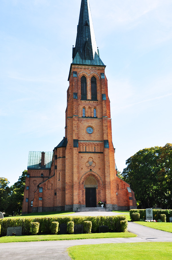 Lugn och ro och välklippta gräsmattor så långt ögat når. Det är lite fantastiskt att ett sådant litet ställe mitt ute i skogen kan ha en sådan mäktig kyrka. Är man inte förberedd blir man rätt förvånad när man kommer förbi vägkrögen och den här mastodont-kyrkan uppenbarar sig.