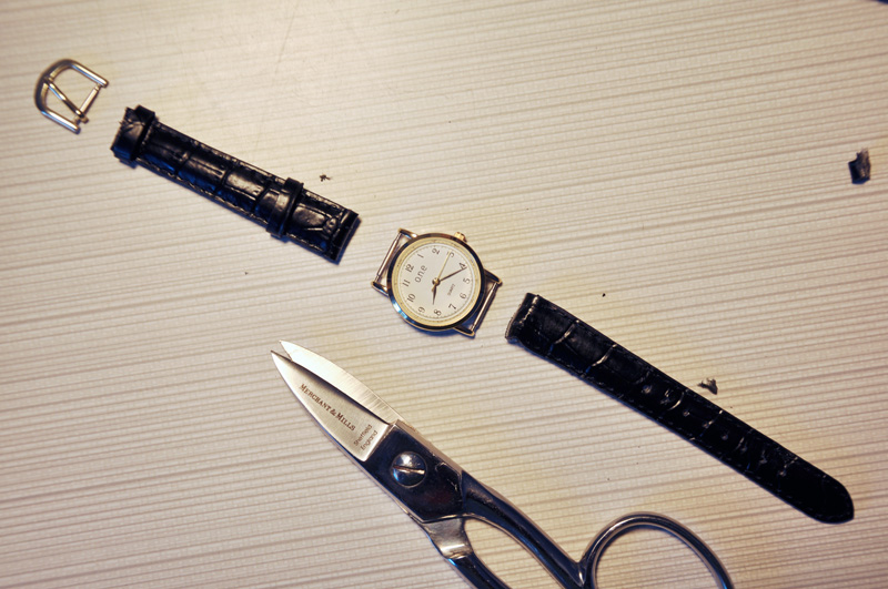 Idag provade jag något nytt, den här klockans armband var inte helt optimalt. Lite lätt plastigt och obekvämt. Så jag gjorde slag i saken och klippte bort det för att sy ett själv. Jag tog en bit fint skinn som vi hittade hos mormor, gammelmormor och mormor brukade nämligen sy sina egna skinnhandskar och den här biten låg tillsammans bland handskmönstrena. De kommer jag garanterat använda i framtiden, egentillverkade handskar av gammalt snitt känns verkligen som något jag borde göra. Hursomhelst, klockarmbandet blev riktigt bra och det mjuka skinnet känns väldigt skönt mot huden. Mycket bättre än det stela plastiga som var på klockan från början. Själv är bäste dräng brukar man ju säga och för det mesta så stämmer det.