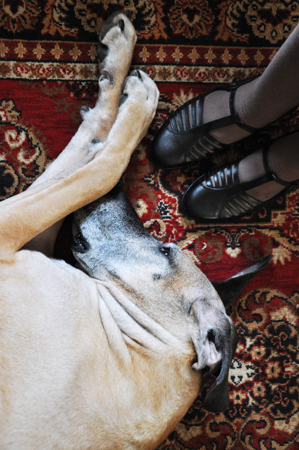 Så avslutar jag min årssammanfattning med en bild på Stella. Vi trodde flera gånger under året att hon inte skulle vara med oss till 2014, gammal som hon är med sina krämpor. Men hon bevisade om och om igen att vi hade fel och hon repade sig från både det ena och det andra med bravur. Men så kanske det beror på att maken och jag alltid sagt ”-Man vet ju inte hur gammal hon blir, bäst att skämma bort henne medan man kan.” som gjort att hon håller sig pigg mellan varven. Vad det än beror på är det bara att vara tacksam och glad för att hon får må bra…. Vår finaste hund-tjej!