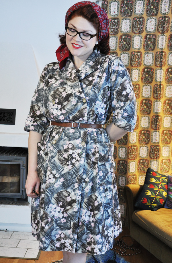 /This is what I wear on the weekends. My great grandmothers wrapdress in a lovely 50s/60s cotton is the most comfortable dress ever, with a warm slip underneath and big wool socks I mosey around the house all sunday./