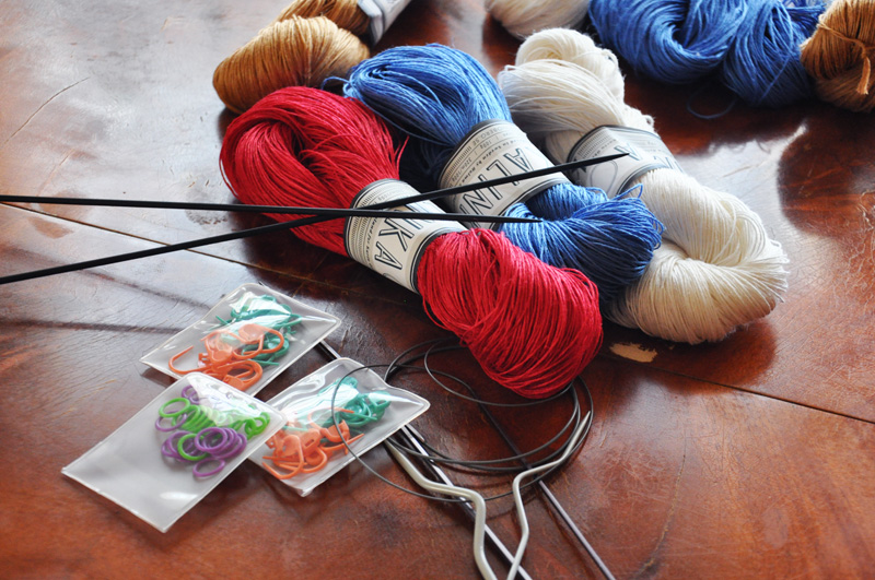 Efter att min röda jumper med vita ränder är färdig tänkte jag sticka något lite mer somrigt. Så jag fyllde på garnlagret Karins Kalinka-garn. Jag har inte stickat i lingarn förut så det ska bli spännande.