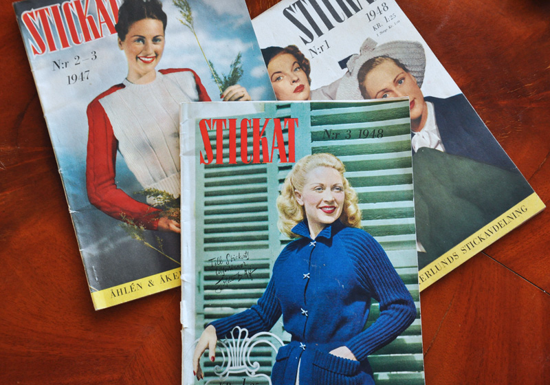 Universum vill verkligen hjälpa min stick-mani på traven. Dagen innan vi skulle åka såg jag nämligen att den trevliga retrobutiken Linne och lump fått in några otroligt fina stickmagasin från 40-talet. Jag hojtade till och de lade undan dem åt mig och på vägen till Stockholm hämtade vi dem i butiken.. Bara att svänga förbi och hämta godbitarna som hade massvis med toppenfina mönster och fina färgbilder i bästa 40-tals stil. Snacka om härlig inspiration och det kunde inte bli bättre tajmat..