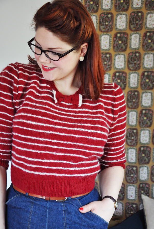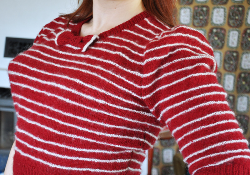 / I finished my red jumper with stripes the other day. I’m very pleased with it, although I’m thinking about dipping it in a dye bath to make the stripes red instead of white. But I’m still thinking about that, no need to hurry at all/