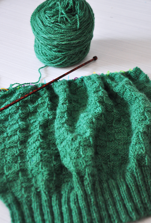 /I’ve started a new knitting in a lovely green shaded woolyarn. I just love this color, perfect for spring…. It’s going to be a simple cardigan, like the one I made in mustard last fall but this time in a basket weave../