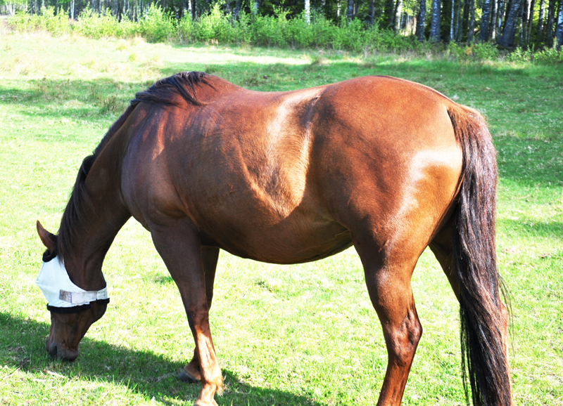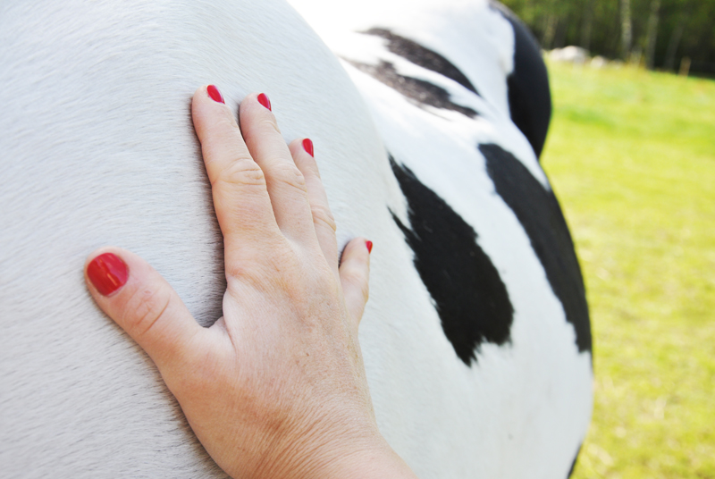 Efter att ha klappat på Ruby går jag vidare till Kansas som också behöver lite morgon-gos. Jag klappar honom på halsen under tiden han äter sin andra tuva morgonhö och jag sniffar på pälsremmen. Det är märkligt men Kansas och Ruby har helt olika lukter. Jag har inte tänkt på förut att hästar såväl som människor kan lukta olika. De luktar givetvis häst, men på helt olika sätt. Båda är lika goda att sniffa på och lika mysiga att inhalera.