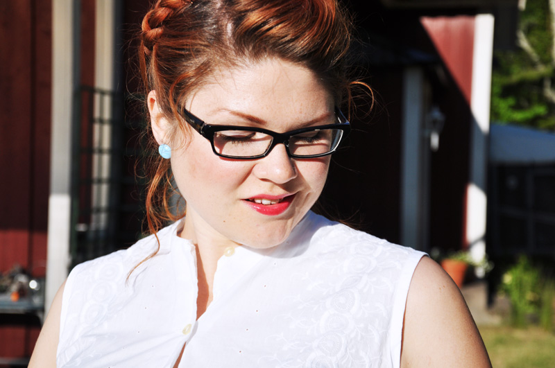 /After working outside all day it’s nice to freshen up in the evening and put on some nice things.. Nowadays when I don’t have so much time to sew it’s a good thing that I sewed so much a couple of years ago. This dress has been tucked away in the closet for some time now and yesterday I took it out. It was long time ago I wore 50s style puffy skirt and it felt quite festive..Braids are my go to hair-do at the moment, the favorite in this warm weather we’re having.. /