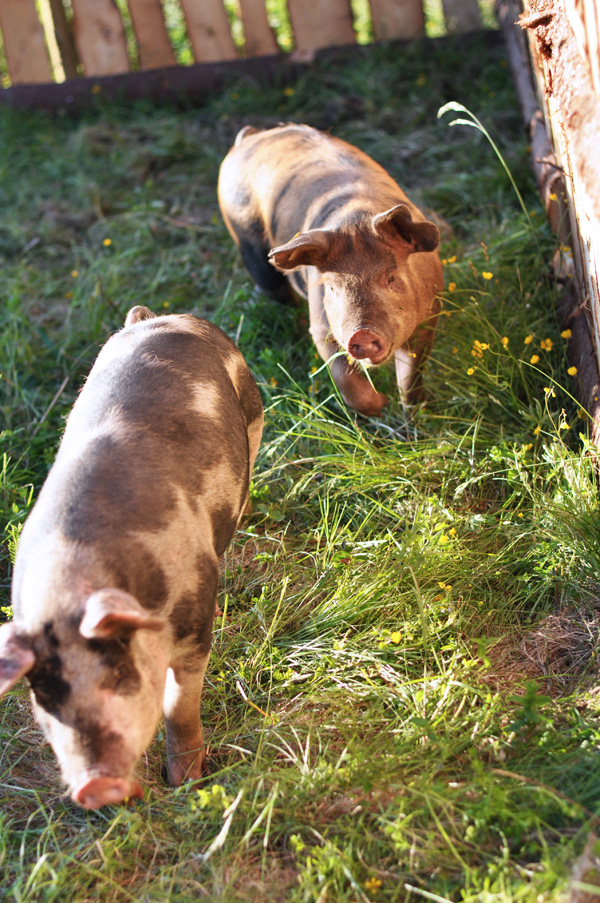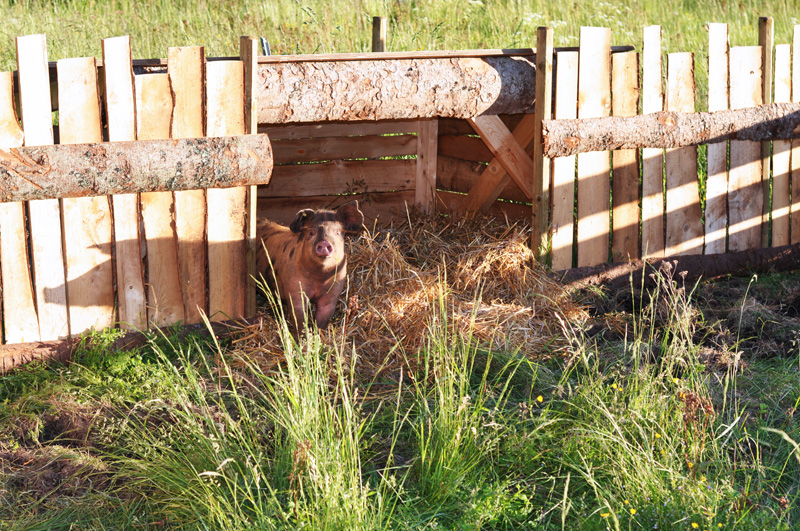 /Well hello there! We decided earlier this year that we should have pigs on our small homestead. And the day before yesterday it was time to finally go and bring them to our place. They are so sweet and now they are quickly working their way through the grass and making a garden patch for me to grow in next year. It’s very nice to not have to dig it up myself. And of course they take care of eating all our leftovers and making lovely sounds that are so sweet to listen to. These are an old swedish breed (Linderöd pig) that are endangered so by having a breeding pair on our farm we also contribute with the keeping of this lovely type of pig./