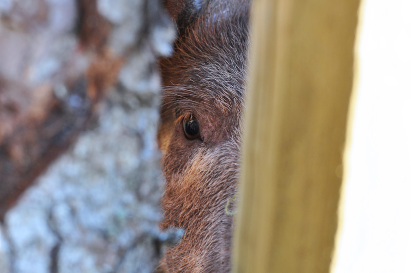 Fort kanske är att ta i, men eftersom vi gjorde ett trästaket med stående bak-ved ser det nästan ut som en palissad som omger deras lilla hage. Nu är den här hagen bara tillfällig. Så småningom ska de få gå i lite större. Dessutom ska det här palissad-omgivna området bli mitt trädgårdsland nästa år, till potatis och bönor och lite annat som tar större plats än odlingslådorna ger. Staketet har två öppningar, en i vardera kortände. I den ena kortändan finns en grind där jag senare tänkte göra en pergola med humle, i den andra står deras lilla koja, den har medar så vi lätt kan flytta den sedan (med traktorn). Så småningom kommer den dessutom bli för liten för fullvuxen gris och då kommer getterna få ta över den tänkte jag.