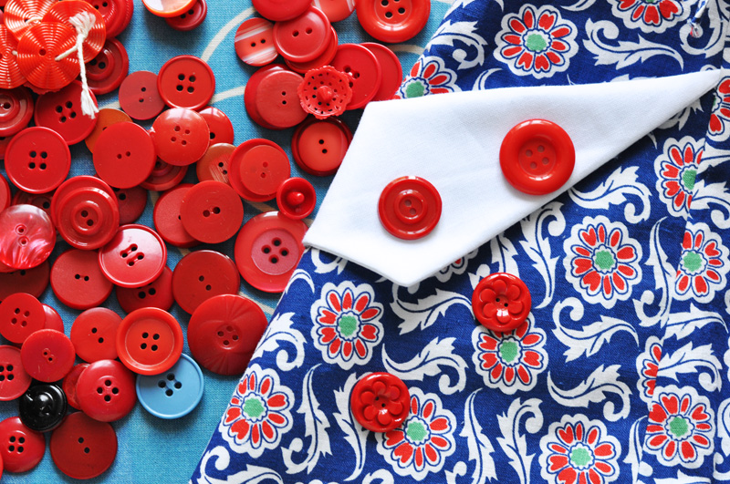 / I’m spending time in my sewing room this sunny day instead of building a new goat pen that I was supposed to to this weekend. The sewingmojo has come back and I take every chance I get to sew something. I started this skirt a couple of days ago and its all but finished now, just have to decide on the buttons. A hard decision and I had to take out all my red buttons to sort through them. Love sorting buttons, it one of the most soothing thing in the world in my book../